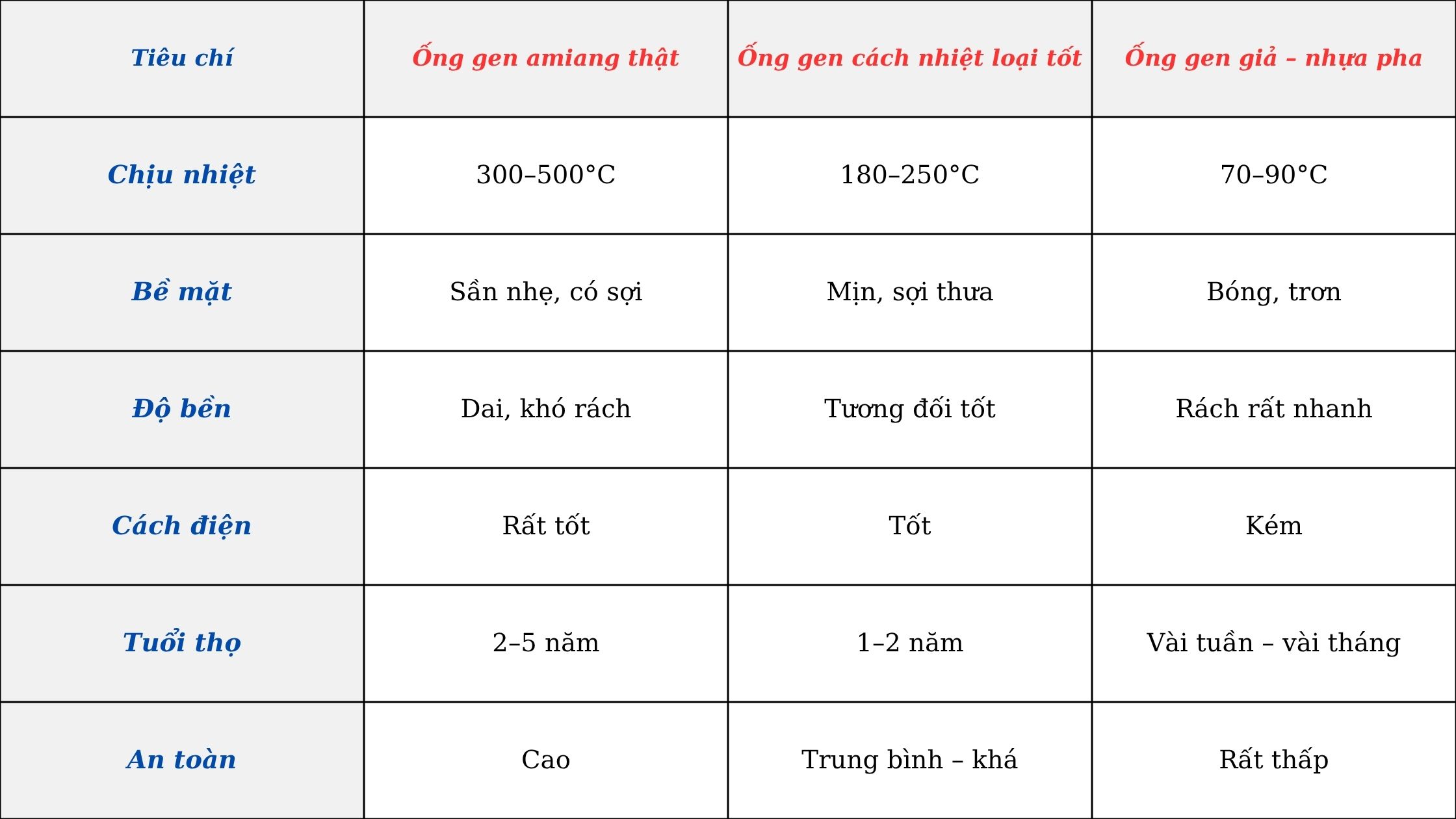→ nên chọn ống gen amiang chịu nhiệt 300–500°C