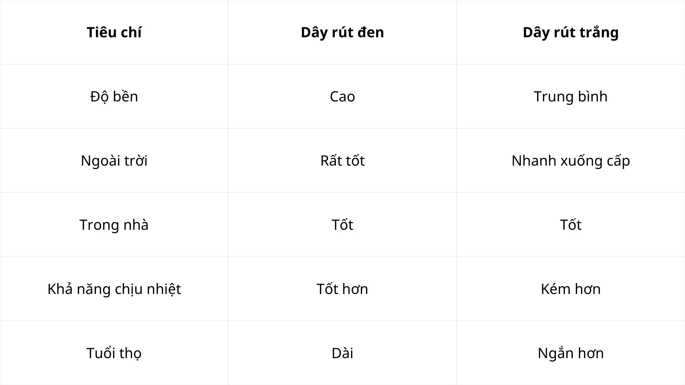 Dây rút đen và dây rút trắng khác nhau ở đâu?