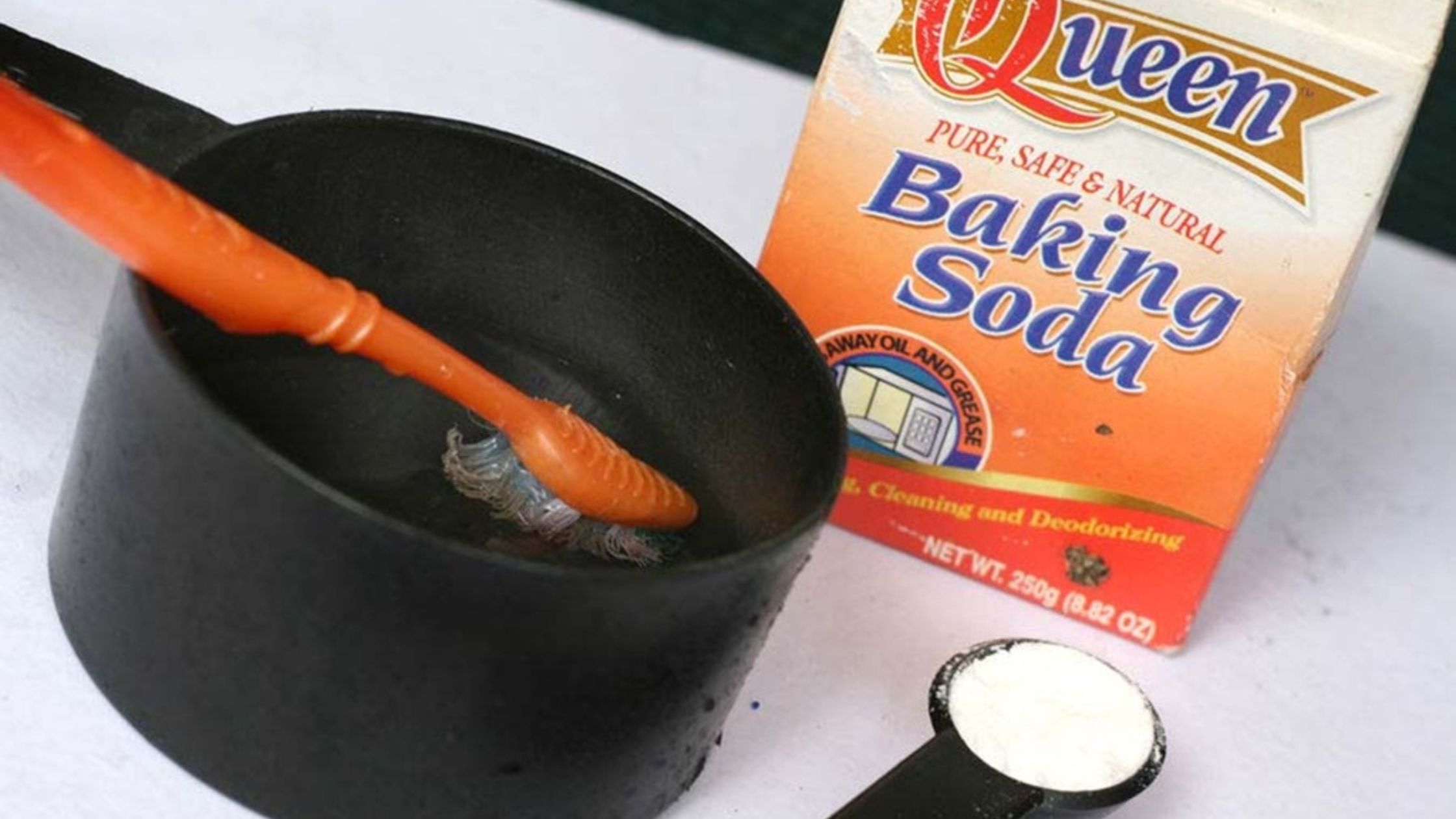 - Pha 1 muỗng canh baking soda với khoảng 250ml nước ấm.