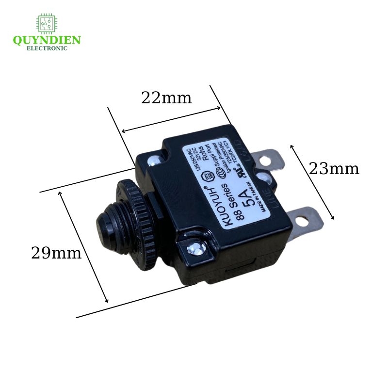 Cầu Chì Tự Động Ngắt KUOYUH 5A – 88 Series –125/250VAC – Kích Thước 22x29mm – Bảo Vệ Mạch Điện – Linh Kiện Quỳnh Diễn