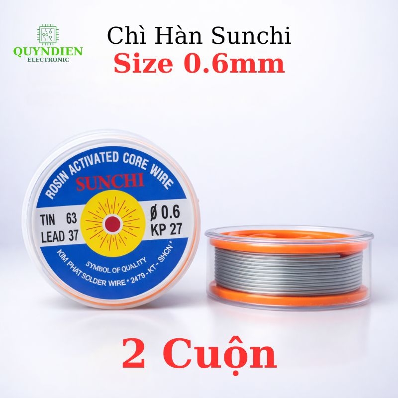 Chì hàn Sunchi Kim Phát 0.6mm là dòng thiếc hàn chuẩn thợ với tỷ lệ Sn63/Pb37, lõi nhựa thông giúp mối hàn sáng, bám chắc và ít khói.
