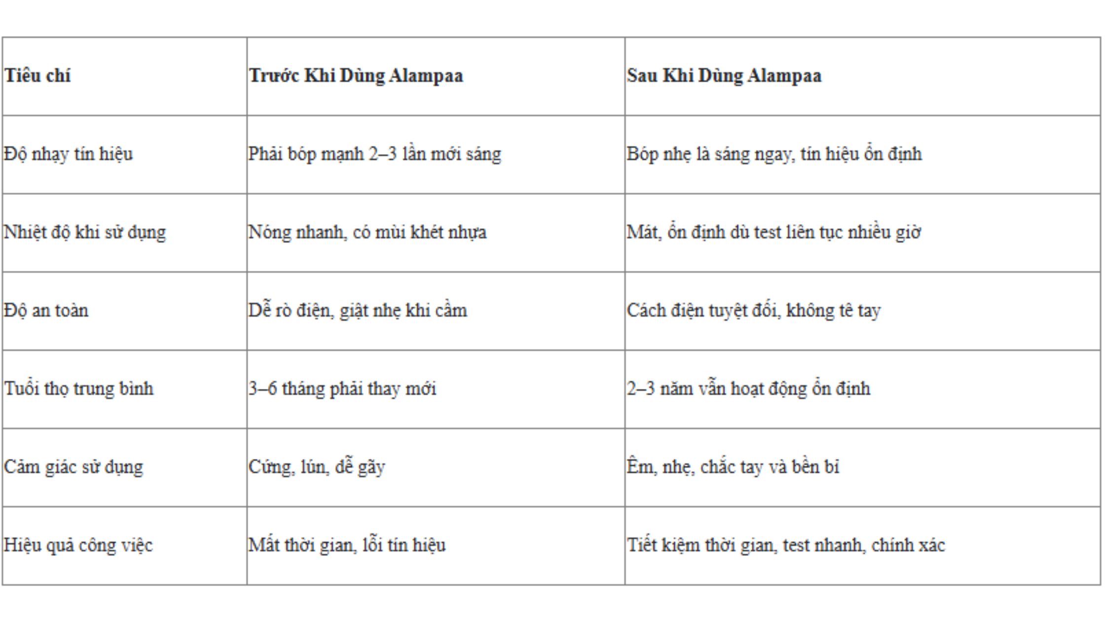 Thực tế, nhiều thợ điện chia sẻ rằng sau khi chuyển sang Alampaa, họ không còn cảnh “bóp mãi không ăn điện” hay “mạch đang test tự nhiên tắt ngúm.”