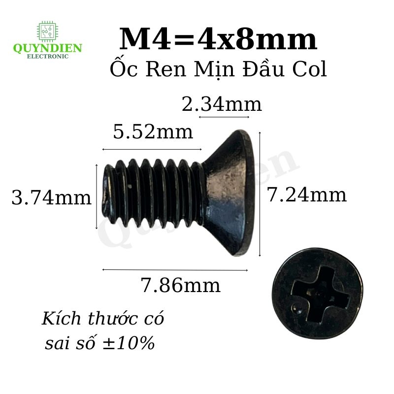 • Kích thước: M4=4x8mm (Thân 4mm chiều dài 8mm)