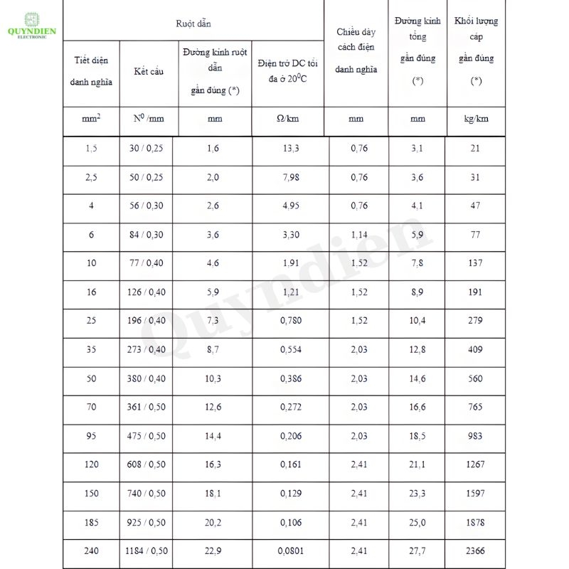 - Tiết diện ruột dẫn: 6.0 mm²