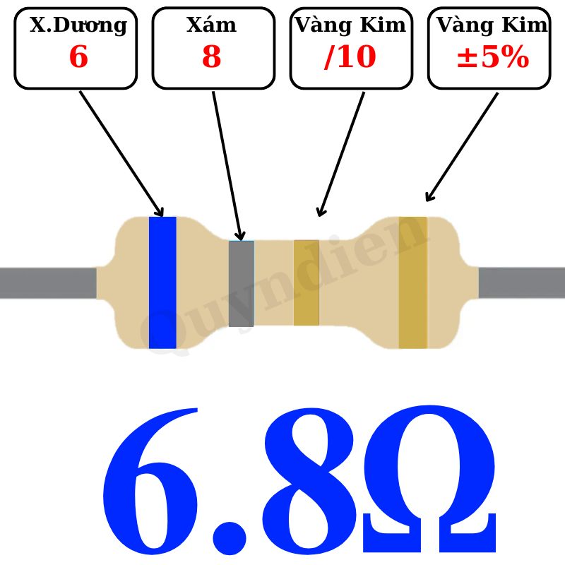🔖 #Linh_Kiện_Điện_Tử #Điện_Trở_Đài_Loan #Resistor #Điện_Trở_Carbon #Điện_Trở_Chân_Đồng #Điện_Trở_6Ω8