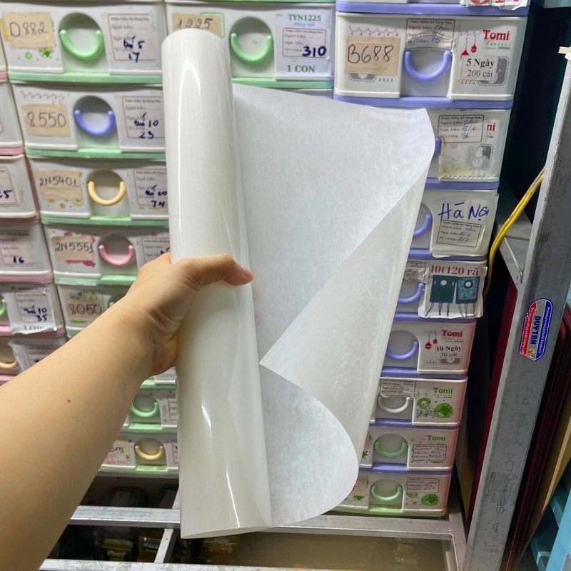 Giấy Phim Cách Điện 0.3mm – 1 Mặt Bóng & 1 Mặt Xù | Khổ 40cm x 1 Mét – Cách Nhiệt, Cách Điện Cao