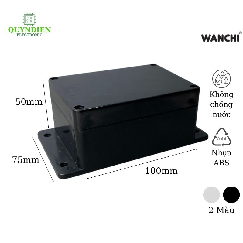 Hộp Nhựa WANCHI ABS 100×75×50mm Màu Đen/Trắng – Đựng 12 Cell Pin 18650, Bảo Vệ Mạch An Toàn