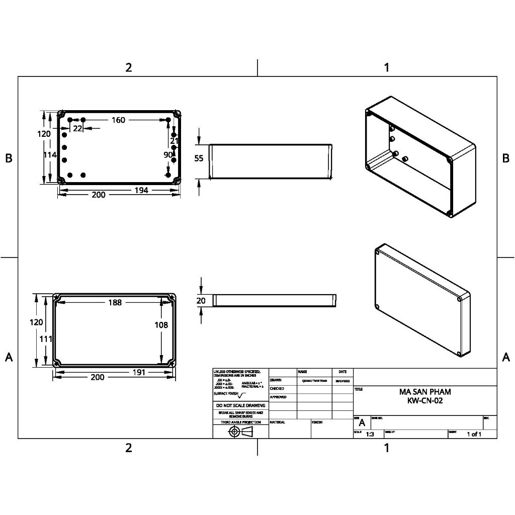 Hộp phay sẵn 200x120x75mm WANCHI là giải pháp hoàn hảo để đựng bo mạch, linh kiện điện tử. Với thiết kế chắc chắn từ nhựa ABS bền bỉ, sản phẩm phù hợp cho các ứng dụng kỹ thuật điện tử, DIY hoặc nghiên cứu.