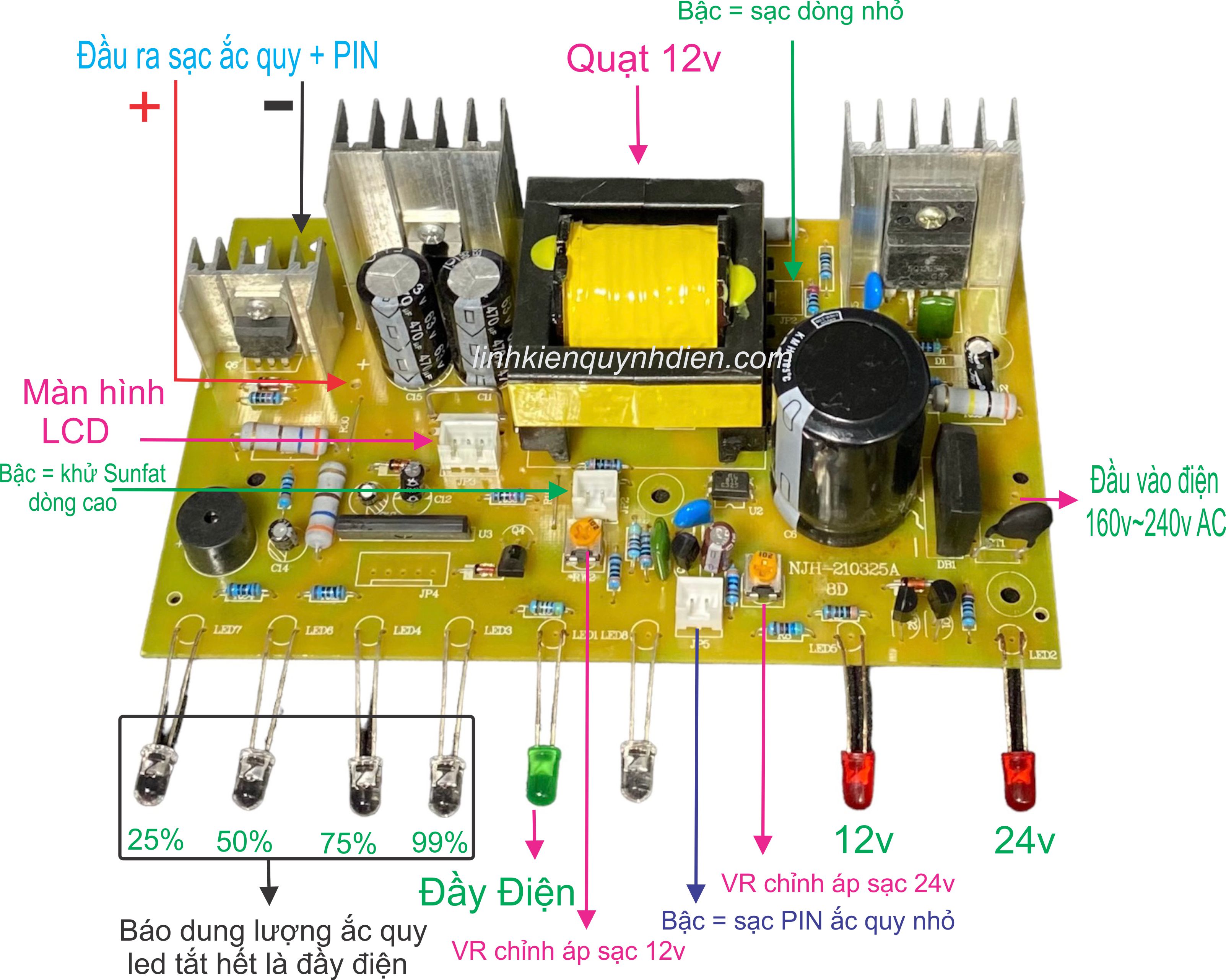 - Mạch Sạc Acquy tự động 3 giai đoạn 12V/24V (phù hợp cho bình ắc quy và PIN từ 20A~400A)