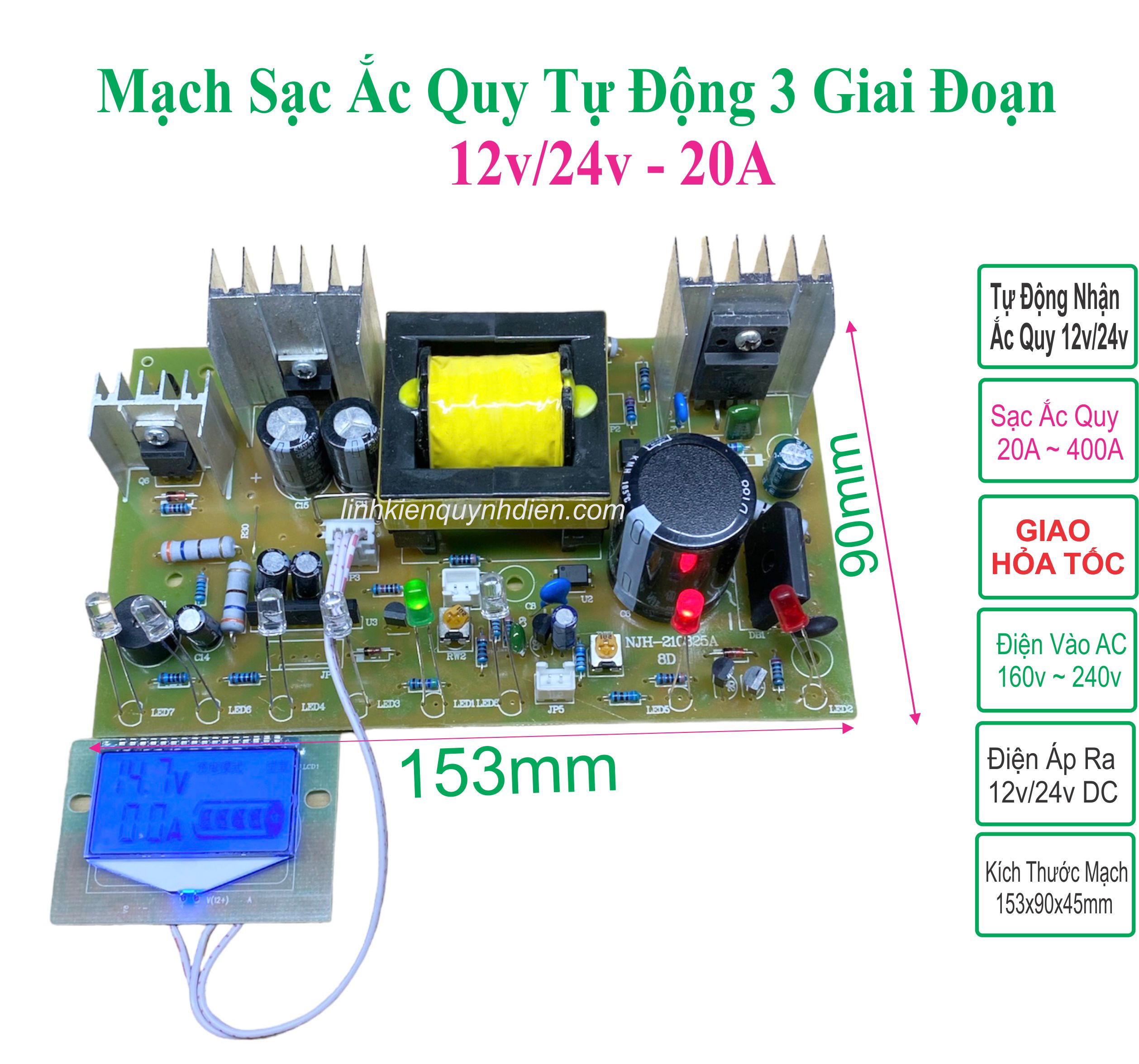 MẠCH SẠC ẮC QUY TỰ ĐỘNG 12/24V 20A