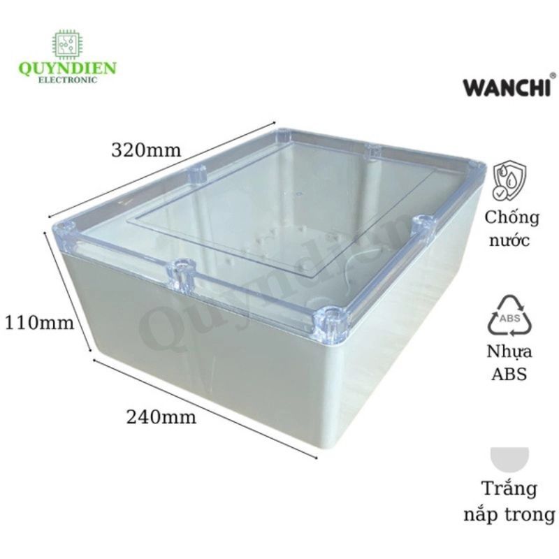 Hộp Nhựa ABS 320x240x110mm Wanchi Chống Nước Nắp Mica Trong Suốt Dùng Lắp Mạch Điện – Linh Kiện Quỳnh Diễn (Giá đã bao gồm VAT)