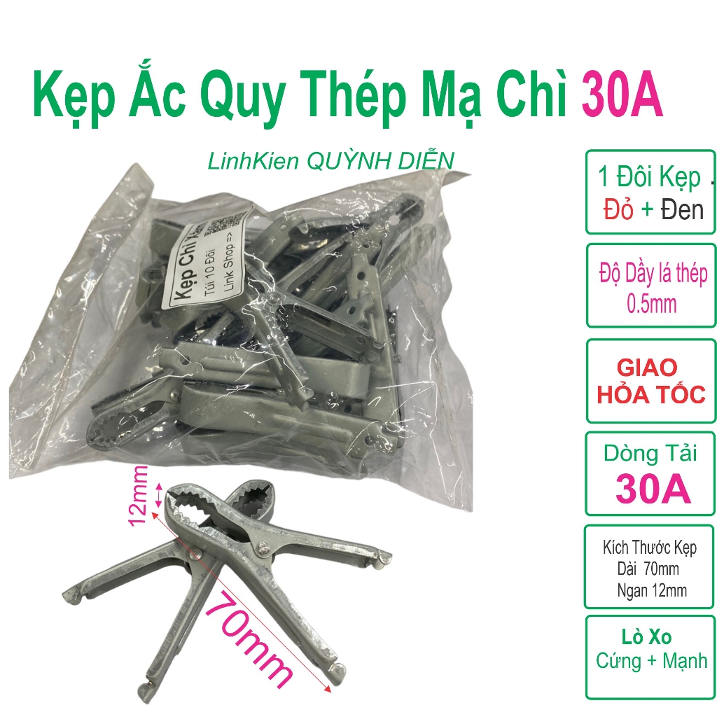Ứng dụng: Kẹp ắc quy, đấu nối nguồn điện, kiểm tra nguồn, DIY điện tử, làm thí nghiệm, sửa chữa điện dân dụng và công nghiệp