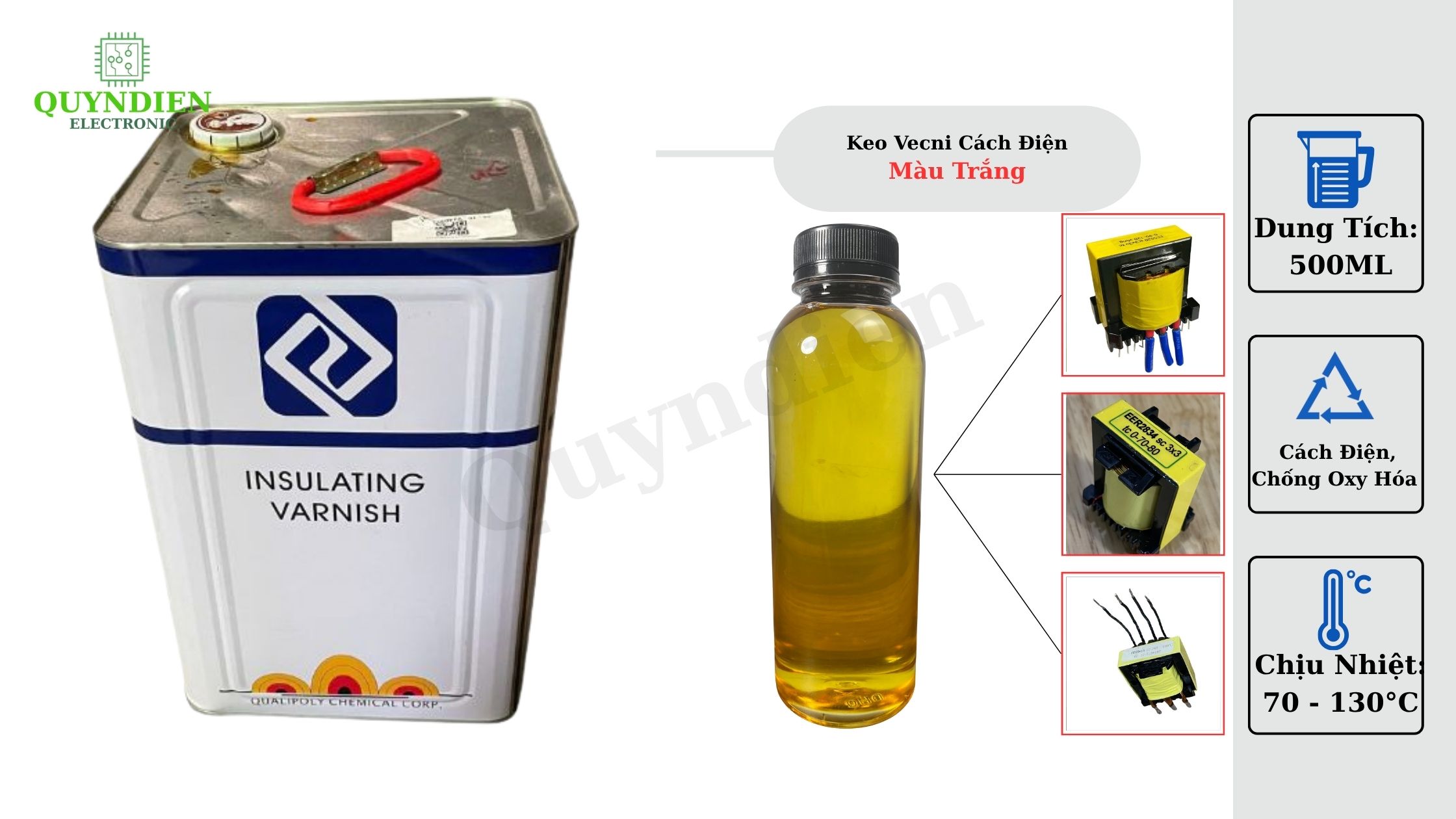 - Vecni trắng dùng cho biến áp, cuộn dây điện tử – mỏng nhẹ, khô nhanh, giữ màu sáng.