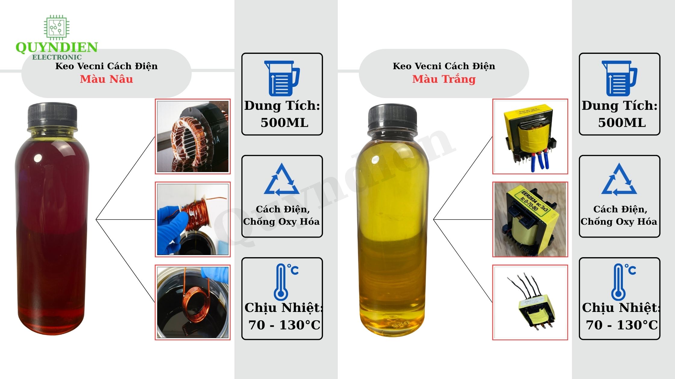 Hiện nay, trong giới kỹ thuật, keo vecni cách điện ALKYD Đài Loan được xem là loại ổn định, bám dính và bền nhiệt tốt nhất, phù hợp cho cả motor công nghiệp lẫn biến áp dân dụng. Tuy nhiên, giữa vecni nâu và vecni trắng lại có công dụng khác nhau – chọn sai, dễ “chết” cả cuộn dây.