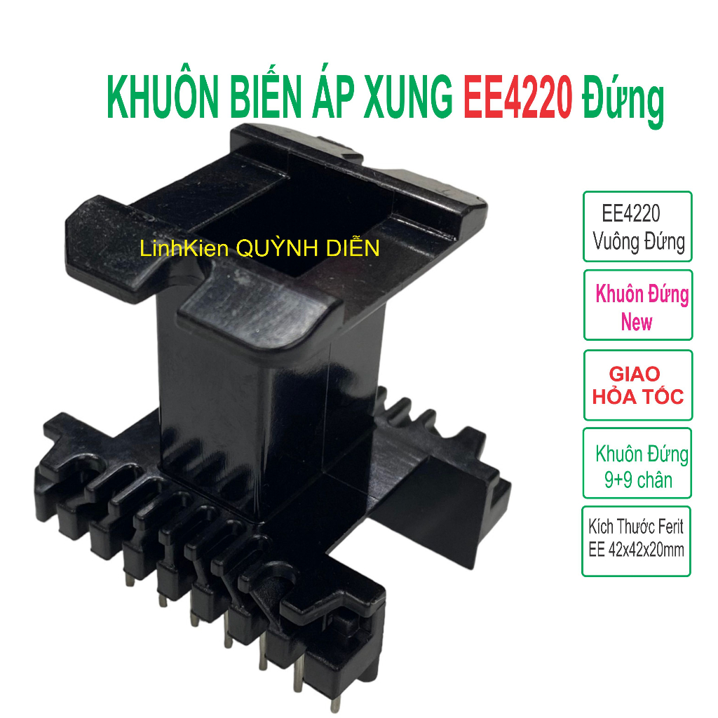khuôn EE4220, khuôn biến áp EE4220 đứng, khuôn 9+9 chân, khung biến áp xung, linh kiện nguồn xung, ferrite EE4220