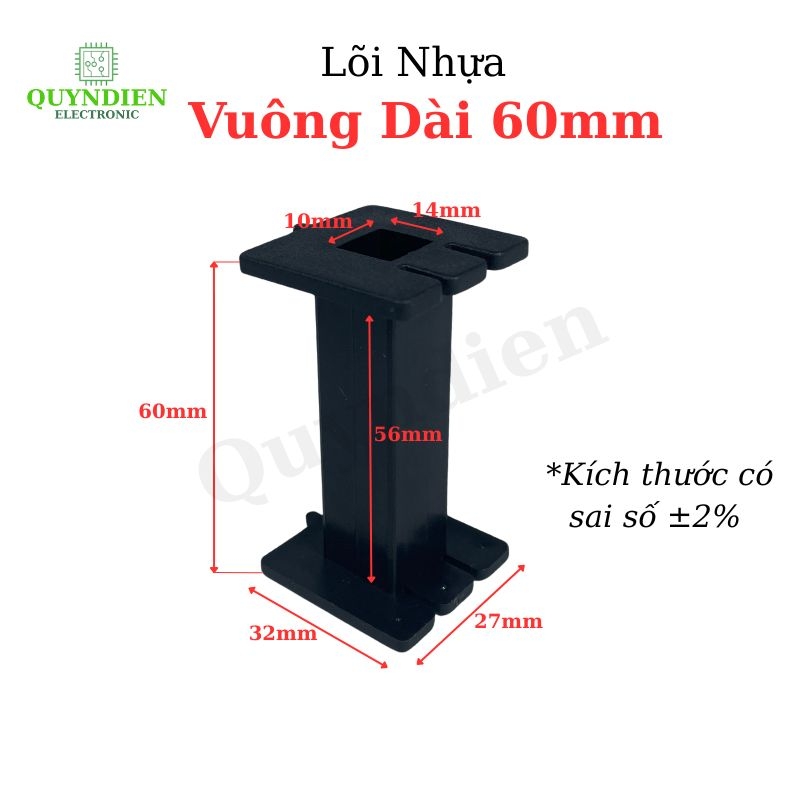 Lõi nhựa vuông dài 60/57mm được sử dụng làm khung cuốn dây cho các loại biến áp, cuộn cảm, cuộn dây từ… 🌀 Thiết kế bền, chịu nhiệt tốt, kích thước chuẩn xác, phù hợp cho nhiều ứng dụng điện – điện tử.