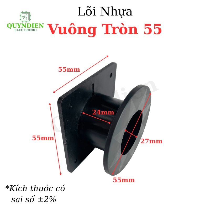 Lõi nhựa Vuông Tròn 55 được dùng làm khung cuốn dây cho biến áp, cuộn cảm và các thiết bị điện tử nhỏ gọn ⚡. Thiết kế kết hợp mặt đế vuông và ống cuốn tròn giúp dễ lắp ráp, cố định chắc chắn và cuộn dây đẹp mắt.