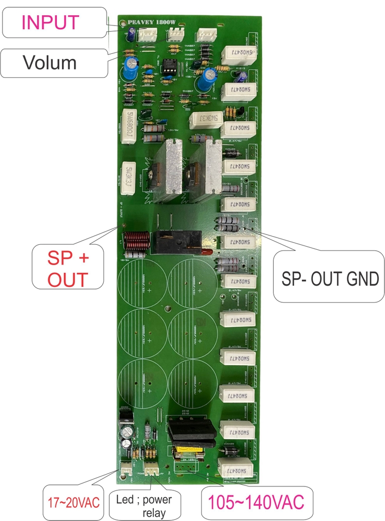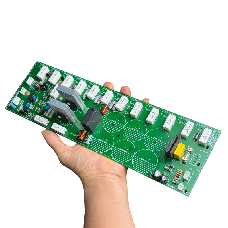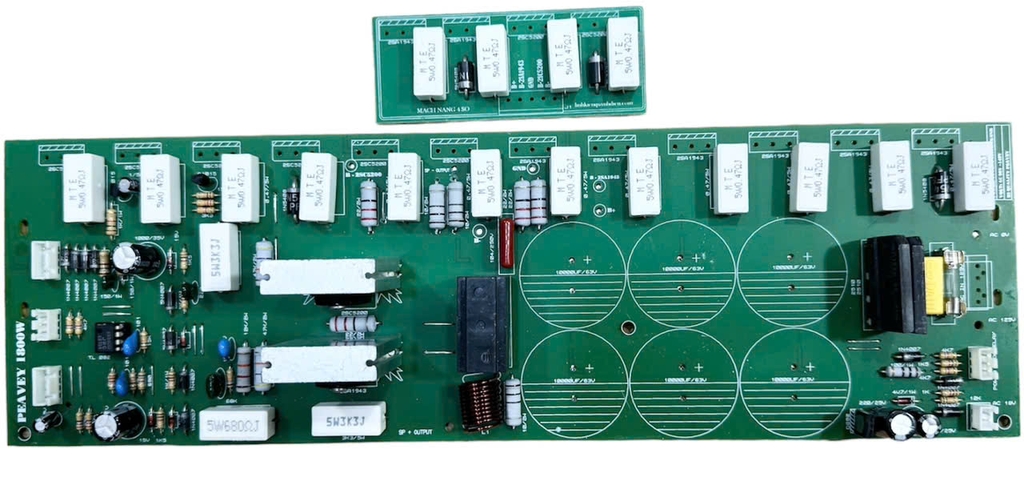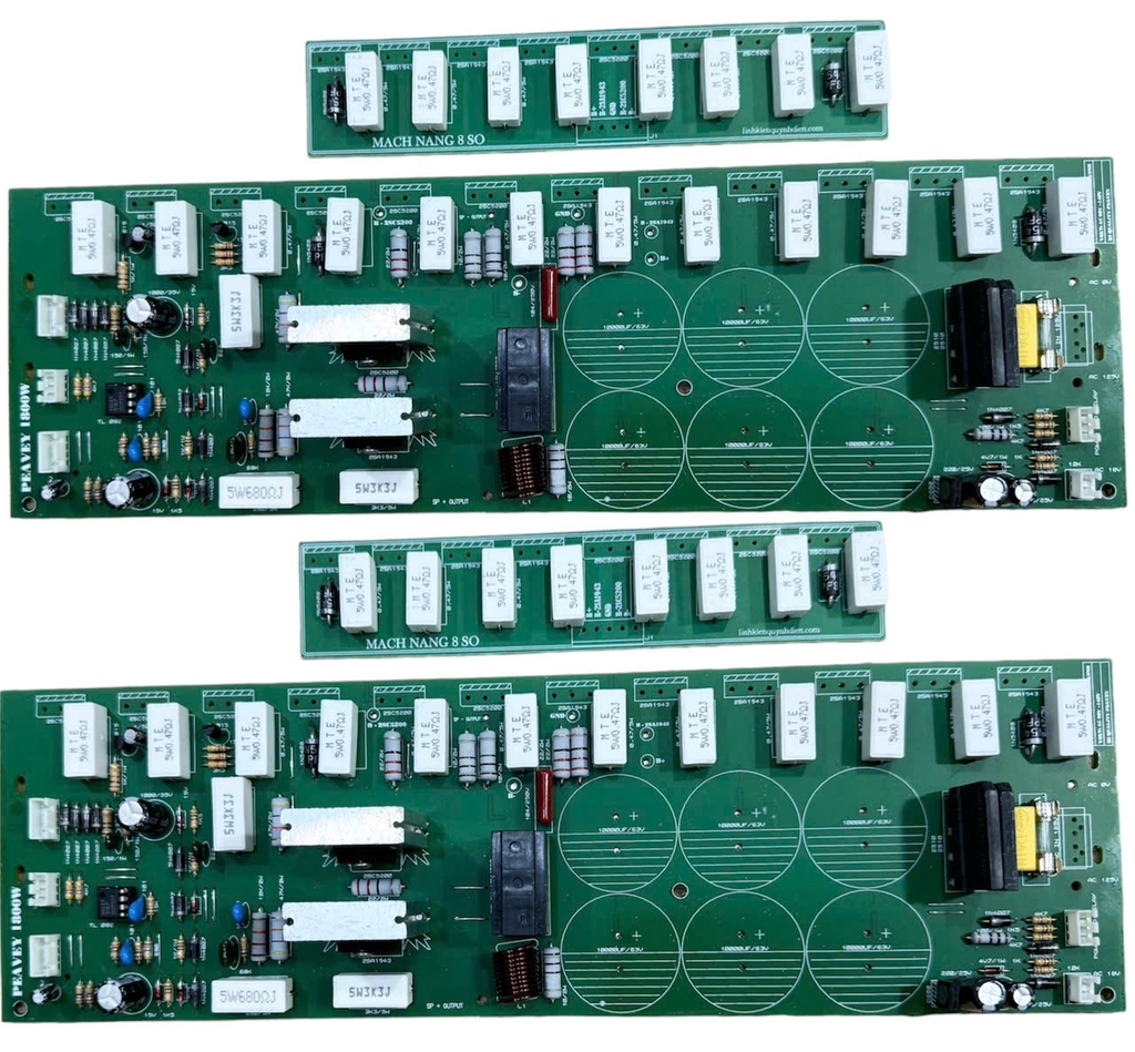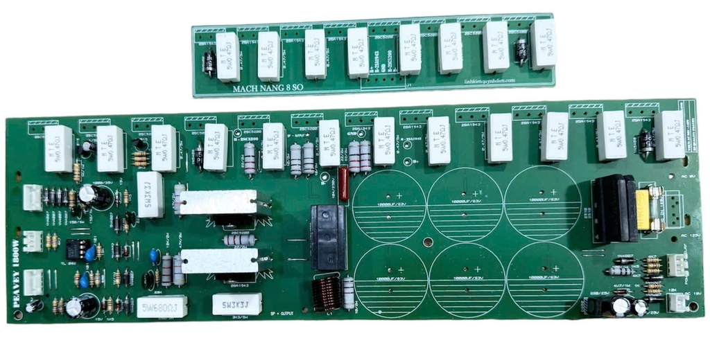 Bo mạch công suất 20 sò được thiết kế chuyên dụng cho các dòng ampli công suất lớn. Sử dụng chất liệu FR1 chắc chắn và linh kiện chất lượng cao, mạch mang đến hiệu năng vượt trội với khả năng chịu điện áp lớn. Sản phẩm phù hợp thay thế và nâng cấp cho các hệ thống main công suất chạy nguồn đơn trên thị trường.