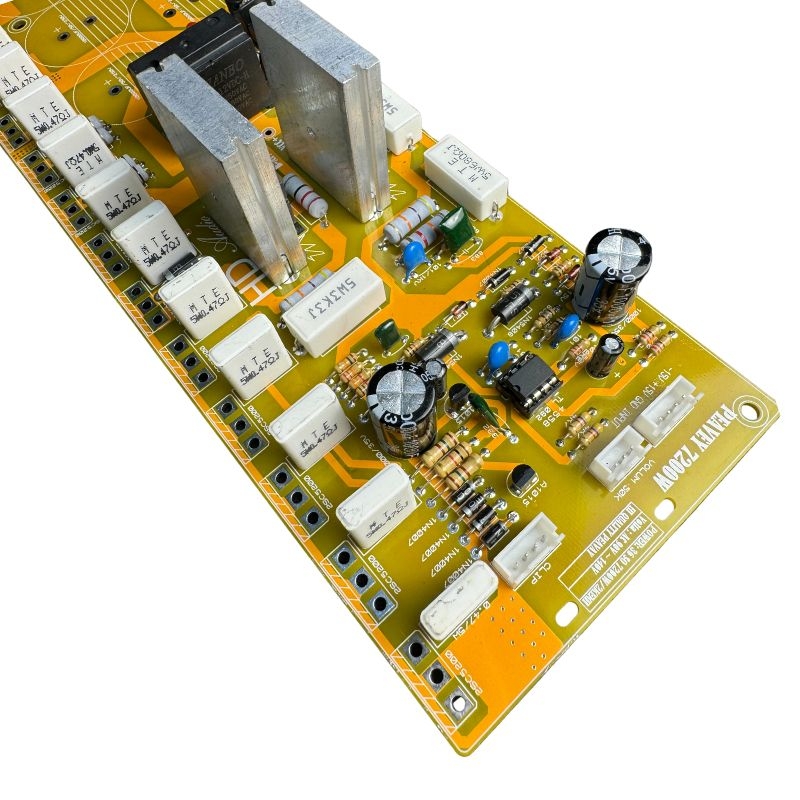 Mạch công suất nguồn đơn 44 SÒ, 2 kênh với thiết kế hiện đại, chất liệu phíp sợi thủy tinh FR4 cao cấp, mang lại khả năng khuếch đại âm thanh mạnh mẽ, phù hợp cho các hệ thống âm thanh công suất lớn, chuyên dụng.