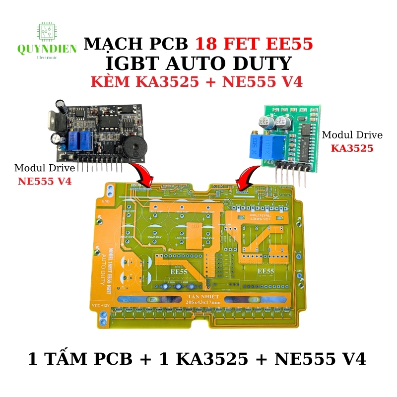 PCB 18 FET EE55, mạch nguồn nước IGBT, mạch lái NE555 V4, KA3525 modul, mạch băm xung IGBT, mạch băm nguồn 12V, mạch điều khiển công suất cao, mạch EE55 driver, IGBT Auto Duty, biến tần dân dụng