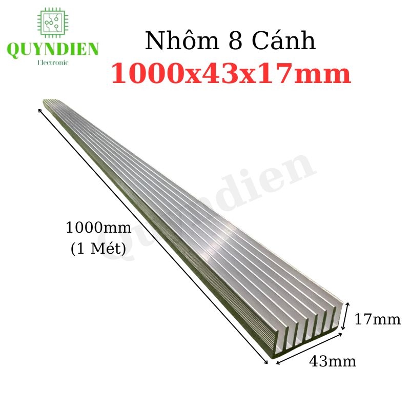 Nhôm Tản Nhiệt 8 Cánh Nhỏ Dài 1 Mét 1000x43x17mm – Tản Nhiệt Nhôm Đùn Đúc, Chống Gỉ, Ứng Dụng Rộng Rãi Trong Tản Nhiệt Điện Tử – Shop Linh Kiện Quỳnh Diễn