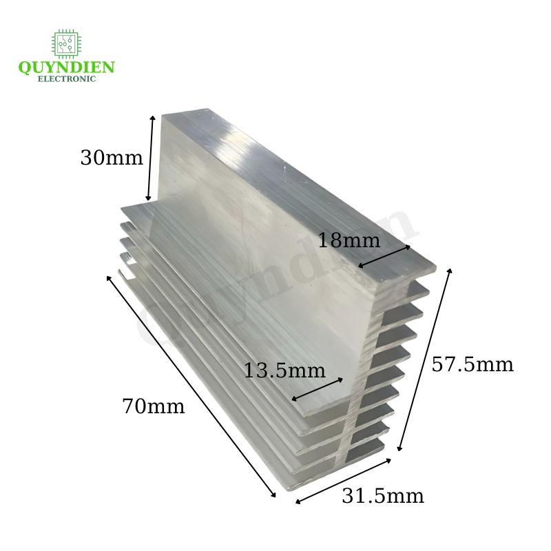 nhôm tản nhiệt Quỳnh Diễn, nhôm tản nhiệt DIY, heatsink dày 3.165mm, nhôm tản nhiệt 70x58x32, phụ kiện điện tử công suất, linh kiện DIY, tản nhiệt module, tản nhiệt LED