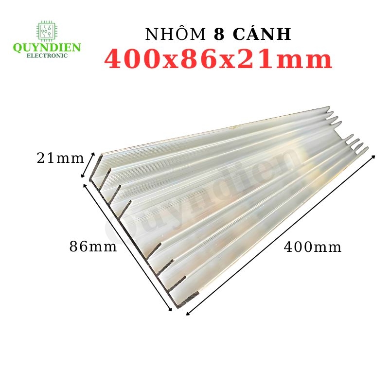 nhôm tản nhiệt 400mm, nhôm tản nhiệt 8 cánh, nhôm tản nhiệt công suất, thanh nhôm làm mát thiết bị, nhôm tản nhiệt mạch nguồn, heatsink lớn 400mm, tản nhiệt ampli, tản nhiệt mạch điện tử