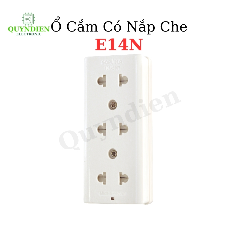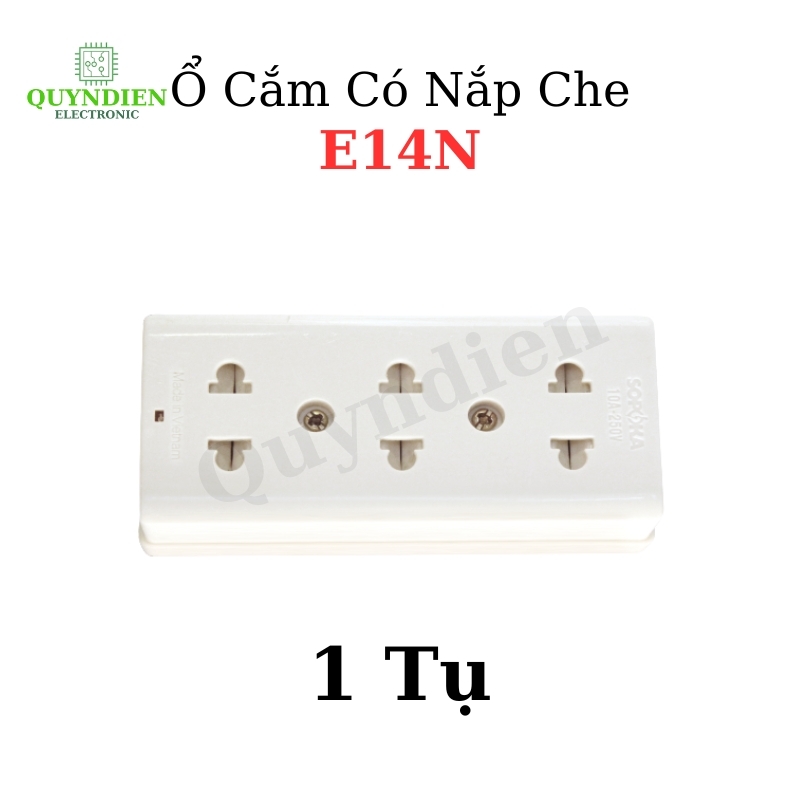 Ổ Cắm Điện Táp Lô 3 lỗ 2200W Có Nắp Che An Toàn E14N mang thiết kế hiện đại, đế nhựa pha sứ chịu nhiệt tới 300°C, chống cháy và chịu va đập. Hệ thống tiếp xúc đồng đàn hồi, lò xo tăng lực kẹp giúp chống move, kết nối đinh tán đồng tránh bong mối hàn. Nắp che bảo vệ trẻ em an toàn. Công suất 2200W, dòng 10A-220V, xuất xứ Việt Nam, đáp ứng nhu cầu sử dụng điện an toàn và bền bỉ.