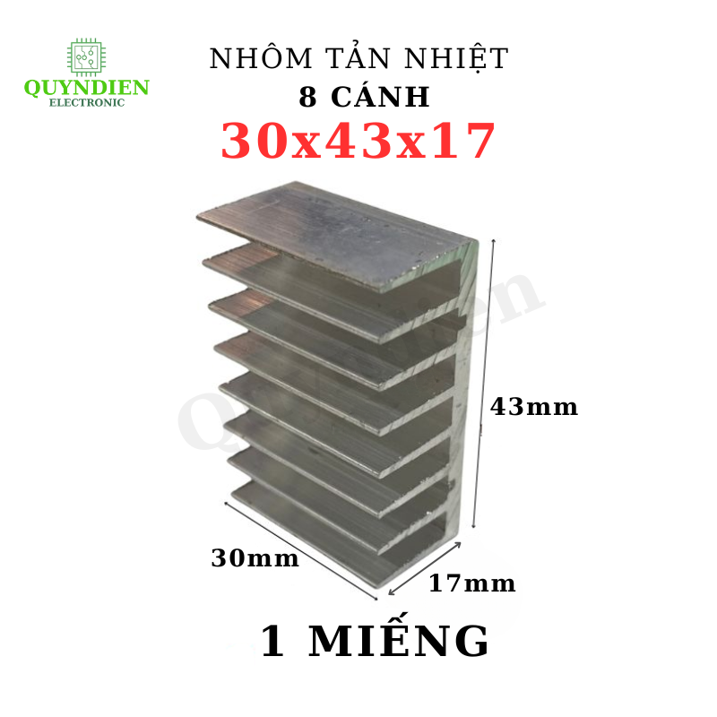 Nhôm tản nhiệt 8 cánh 30x43x17mm với thiết kế hiện đại, chất liệu nhôm nguyên chất, khả năng làm mát nhanh chóng và ổn định.