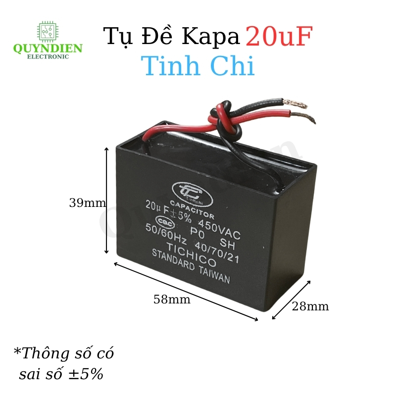 Tụ Đề Kapa 20uF 450VAC Tinh Chi Vuông – Tụ Đề Motor 1 Pha, Quạt, Máy Bơm – Linh Kiện Quỳnh Diễn