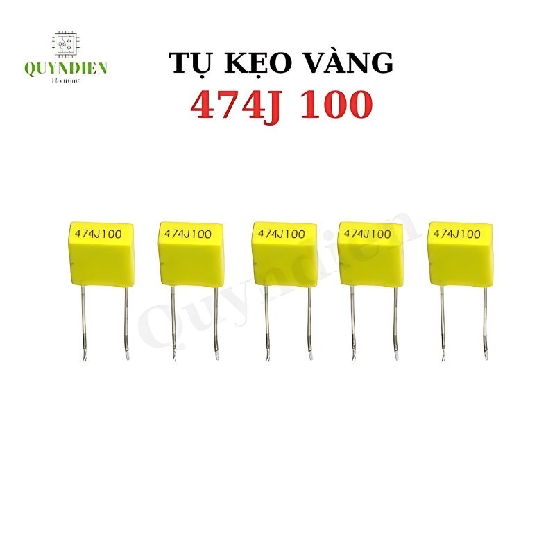 tụ kẹo vàng 474J 100, tụ màng 0.47uF, tụ 474 100V, tụ polyester, tụ lọc nhiễu, tụ âm thanh, tụ chân cắm, linh kiện điện tử, tụ vàng