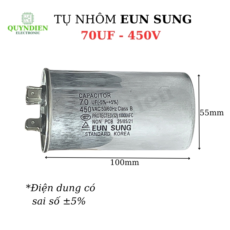 Tụ Nhôm Eun Sung 70uF – 450V | Tụ Điện Motor, Tụ Đề Máy Bơm Nước, Quạt Điện, Điều Hòa