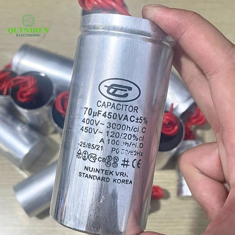 Tụ Nhôm Dây 70uF 450V Tụ Đề Motor 1 Pha, Quạt Trần, Máy Bơm, Điều Hòa – Linh Kiện Quỳnh Diễn (Giá đã bao gồm VAT)
