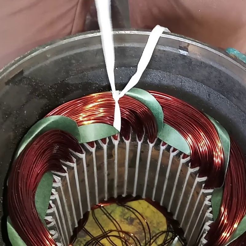 Lót khe stator bằng fishpaper/mica để ngăn chạm dây vào lõi sắt.